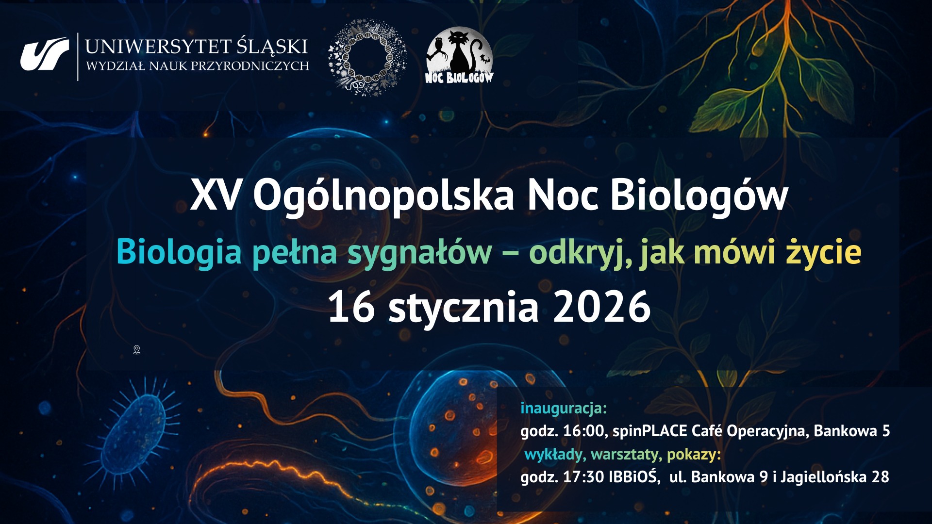 Ogólnopolska akcja przebiegająca pod nazwą Noc Biologów odbędzie się już po razy piętnasty 16 stycznia 2026 roku. Hasło tegorocznej edycji brzmi: "Biologia pełna sygnałów – odkryj, jak mówi życie".